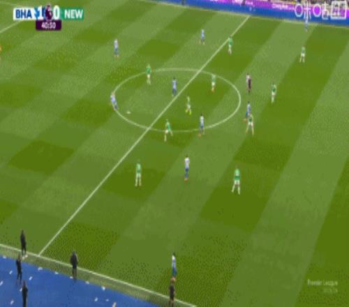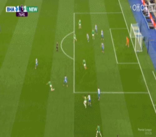 第41分钟,维尔贝克单刀挑射破门,布莱顿1-0纽卡