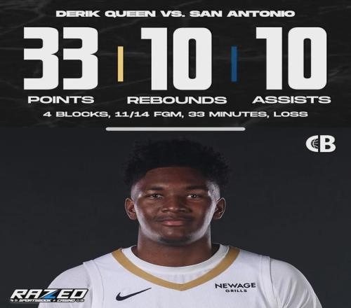 到昨日面对马刺,被蒂姆-邓肯看好的奎因打出了生涯之夜,轰下33分10篮板10助攻4盖帽的史诗级数据。