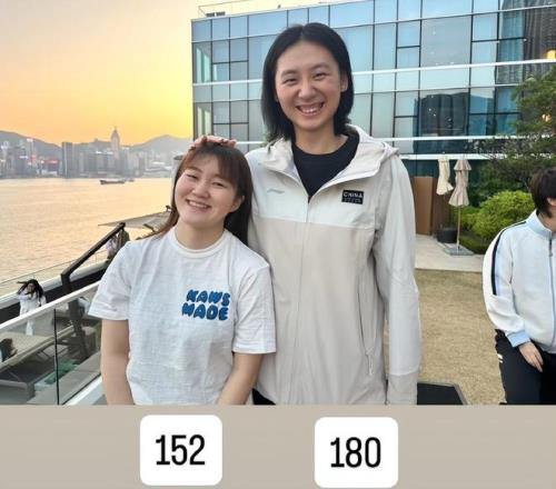 WTT总决赛期间,实际身高1米80的陈熠和日乒选手、身高1米52的大藤沙月合影留念,上演了最萌身高差的一幕。站在陈熠身边,大藤沙月就是一位小朋友。