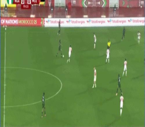 尼日利亚小组赛表现非常突出,3战全胜杀进16强。今天对阵小组第3出线的莫桑比克,尼日利亚依然保持着良好的状态,开场后就完全压制莫桑比克,仅仅1分钟,奥斯梅恩就在小禁区内抢点破门,只不过他稍稍越位在先,进球被吹掉。第19分钟,尼日利亚高效进攻撕破莫桑比克防线,伊沃比中场左侧精妙直塞,亚当斯插上突入禁区倒三角横传中路,后排跟进的卢克曼迎球直接大力推射,皮球应声入网,尼日利亚1:0首开纪录。