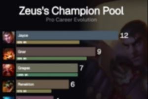 电竞体育1月16报道 外媒统计Zeus英雄池演化历程:2021到2025。
